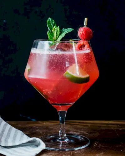 מרכיבים: ליים, נענע טרייה, פטל, וודקה, סירופ פשוט, מי סודה