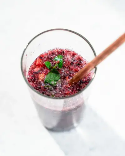 קוקטייל הוודקה הזה הוא הכל על פירות מרוסקים וקרח! זה חריף ומרענן, כולל פטל שחור מבולבל, נענע וליים. זה חריף, זה מתוק, ויש לו קצת טעם של וודקה אחורי. וזה יורד בקלות.