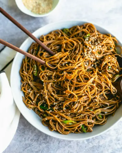 צריך תיקון מהיר של אטריות? נסה את אטריות הסובה הפשוטות האלה! סובה הן אטריות כוסמת יפניות, והן מושלמות כרכיב לארוחת ערב מהירה וקלה. נעשה תוך כ-15 דקות, הם מכוסים ברוטב עז של מיסו, רוטב סויה, שמן שומשום ודבש ומפזרים שומשום קלוי. זורקים אותם בקערה ומעליהם ביצה או שרימפס מוקפץ , ויש לך ארוחת ערב!