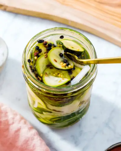 דרך מהנה להשתמש בקישוא נוסף? כמו חמוצים! המתכון הזה תבלין מתוק חריף ומלוח שמתאים לכריכים, ממרחים או להתלבש לוחות גבינה . כמובן, אנחנו אוהבים לנשנש אותם ישירות מהצנצנת.