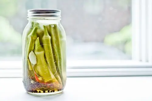 מתכון חמוצים תוצרת בית זה קצת יותר ייחודי: זה במיה כבושה! מה אתה עושה כשצמח הבמיה שלך משתלט על הגינה שלך? להכין במיה כבושה, כמובן! ההכנה לוקחת פחות מ-20 דקות. גרגירי הפלפל, הצ'ילי היבש והשמיר הטרי במתכון הזה יוצרים במיה סופר טעימה שטעימה לאכול בפני עצמה כחטיף או מתאבן. או, לזרוק אותו לתוך א בלאדי מרי !