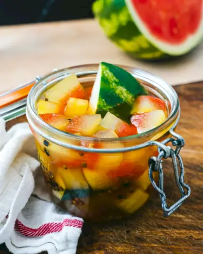 הכדורים הזעירים הטעימים האלה הם בהירים ויפים, קשת של בשר אדום נמוגה לתוך הקליפה המצהיבה. קח ביס אחד והטעם החריף עם רמז של ציפורן וכוסברה יגרום לך מיד להושיט יד אחר. מתכון קליפת אבטיח כבוש זה פרויקט השימור האידיאלי: דרך מצוינת להפחית בזבוז מזון לאחר הכנה שייקים , מִיץ , או סלט אבטיח !