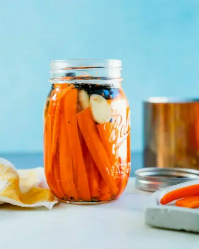 אין כמו הקראנץ' המלוח והחריף של גזר כבוש, נכון? אכלו אותם בתור התענגות, זרקו אותם על קרש גבינה, הוסיפו אותם לכריכים... או פשוט שאפו אותם ישירות מהצנצנת. הגזרים הכבושים המהירים האלה הם מעבר לפשוטים להכנה בבית. אתה לא צריך שום ציוד שימורים מיוחד או מומחיות. פשוט מערבבים תמיסת מלח, חותכים את הגזרים וזורקים אותם לצנצנת. תוך 24 שעות, יש לך חמוצים!