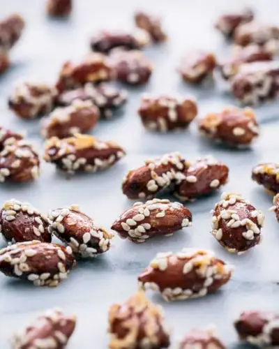 מתכון נחמד לנשנש עד ראש השנה: שקדי שומשום! המתכון הזה מלביש שקדים שלמים כדי להפוך אותם לחטיף מלוח-מתוק מושלם. צלייתם עם תערובת של דבש, מלח, שומשום ופלפל קאיין הופכת את האגוז למזון העל הזה פריך ומורם.