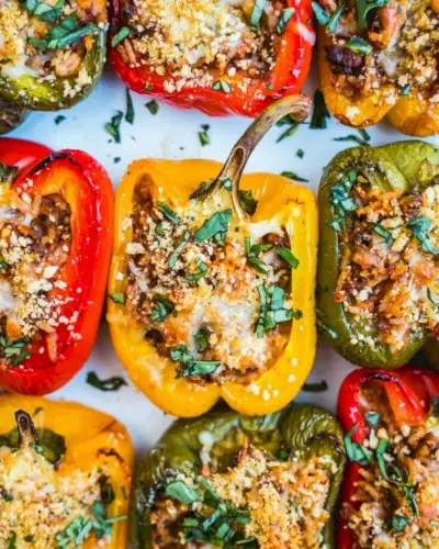 כשיהיה לך זמן להתכונן, נסה את מתכון הפלפלים הממולאים הטעים הזה! המילוי מתובל בצורה שאין לעמוד בפניה בתבלינים איטלקיים, רוטב פיצה וגבינה נמסה. אפילו טוב יותר: זה עובד עבור דיאטות רבות, עם וריאציות עבור אוכלי בשר, צמחונים ואוכלים ללא גלוטן! נסה גם: פלפל ירוק ממולא