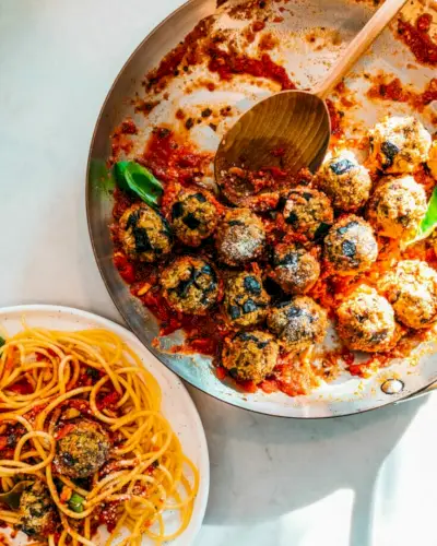 ניסית פעם להכין קציצות עם חצילים? שום, עשבי תיבול, פירורי לחם וגבינת פרמזן הופכים קציצה אחת עסיסית ומלוחה בטירוף. חציל קלוי הופך אותם לחים ובמרקמים, לעומת יבשים או עיסתיים כמו הרבה כדורים צמחוניים. שלב את זה עם רוטב מרינרה ופסטה וזה לא מהעולם הזה טעים.