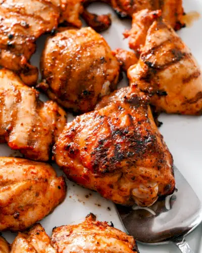 ברוכים הבאים לארוחת הערב החדשה והאהובה עליכם בקיץ: ירכי עוף בגריל עסיסי! אלכס ואני קבענו ליצור את הדרך הטובה ביותר לצלות ירכיים, ואנחנו חושבים שזהו זה. הכריעו אותם בתערובת של חרדל דיז'ון, רוטב ווסטרשייר ותבלינים, ואז זרקו אותם על הגריל ובשלו עד שהם עסיסיים ומעושנים.