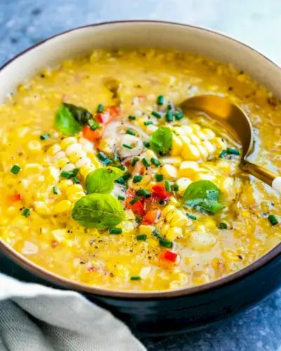 מרק התירס הפשוט הזה הוא דרך עונתית ליהנות מתירס טרי! הטעם שטוף השמש מתוק ומלא ניואנסים, והוא מלא בירקות בריאים.