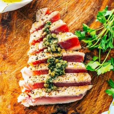 נמאס לכם לצלות המבורגרים וסלמון? לטונה אחי יש מרקם עשיר וחמאתי. צרוב בצורה מושלמת מבחוץ, טעמו יותר כמו עוף או סטייק מאשר דג! זה באמת אחד הדברים המהירים ביותר שאתה יכול לבשל! רק 1 עד 2 דקות, ויש לך ארוחת ערב. חבר אותו לפשוט רוטב צ'ימיצ'ורי לארוחה מהממת!