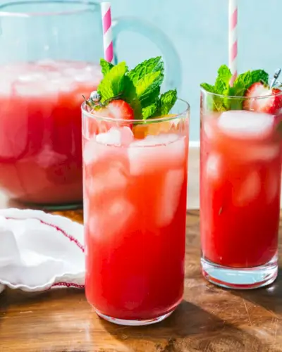 מי התותים האלה דומים יותר לאגוה פרסקה מאשר מים מוזלפים, אבל זו הדרך הטובה ביותר לטעום מים עם פירות יער אלה! למים בטעמים טעימים אלה יש תמצית פירות יער והם מרעננים. הכינו קנקן גדול ותוכלו ללגום ממנו במשך ימים: או שהוא מושלם עבור מְשַׁעַשֵׁעַ .