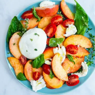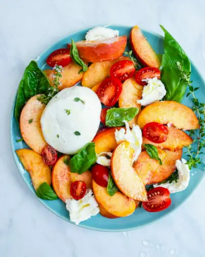 מתכון לסלט קיץ זה הוא הדרך הטובה ביותר להגיש גבינת בוראטה עשירה וקרמתית! חבר אותו עם פירות קיץ או עגבניות, שמן זית ומלח ים.