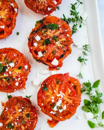 העגבניות בגריל המדהימות האלה קלות ועמוסות בטעם מעושן ועסיסי. הגישו אותם עם עשבי תיבול עבור פינוק קיץ סנסציוני.