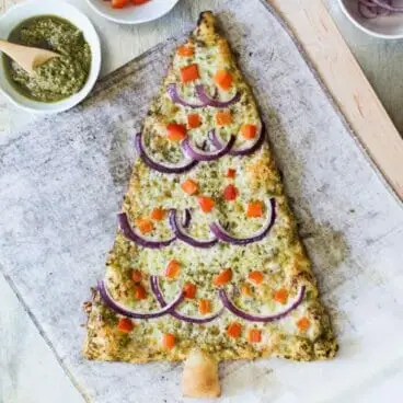 כשמגיעים החגים, אחת המסורות האהובות עלינו אֵיִ פַּעַם הוא לעשות פיצה לחג המולד : זו פיצה בצורת עץ חג המולד! הייתה לנו את המסורת הזו עם האחיינים והאחיינים שלנו, ואחרי שהפכנו להורים, זו מסורת שהמשכנו עם בננו לרסון! הפוך את הבצק שלך לעץ חג המולד, הוסיפו עליו שלג פסטו ומוצרלה, והוסיפו קישוטים ירקות. אין דבר שאנחנו אוהבים יותר מאשר להיכנס לאווירת החג עם ארוחת הערב הטעימה הזו (תוך כדי צפייה בסרט Elf, כמובן!).