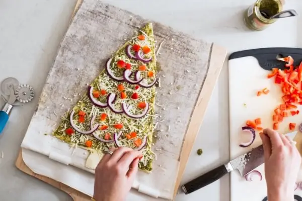 הכנת מתכון פיצה לחג המולד הזה עם קישוטי פסטו וירקות היא המסורת המושלמת לחג, במיוחד עם ילדים!