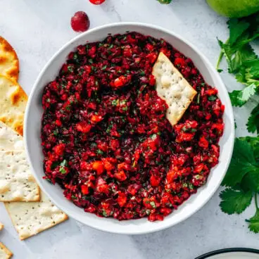 מתכון סלסת חמוציות זה טרי, חריף ומתובל! זה מתאבן סתיו וחורף מהנה שכולם יאהבו.