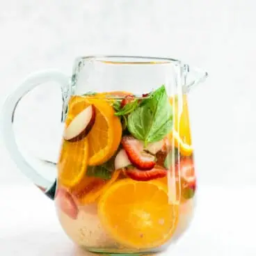 אבל גם, שתיית המון מים היא תמיד דבר טוב! זה נפלא לבריאות שלך. מים חדורי פירות נראים כמו משהו הרבה יותר מיוחד מסתם מי ברז, מה שהופך אותם לתחליף מצוין לסודה או למשקאות ממותקים אחרים. אין בו סוכר בכלל: זה רק פירות, עשבי תיבול ומים!