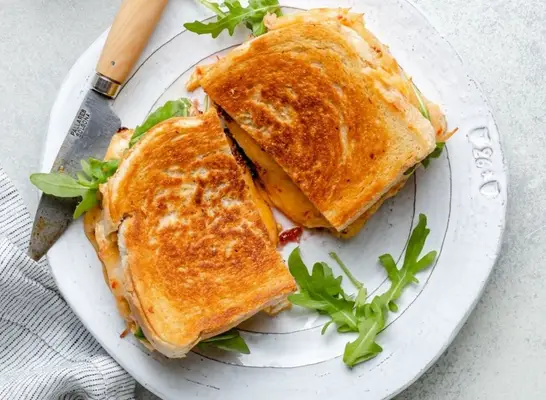 Sure you could toss together a simple grilled cheese in a few minutes, but this one will send your taste buds into overdrive. זה מכה את האיזון המושלם בין מתוק, טעים וחריף. If you don't have cherry jam, use what you have and play around with the flavors.