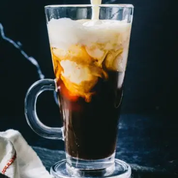 - לְשָׁרֵת: מוסיפים את האספרסו לכוס מלאה בקרח. מערבבים פנימה את סירופ הווניל ומעליו את החלב המוקצף. תהנה מיד.