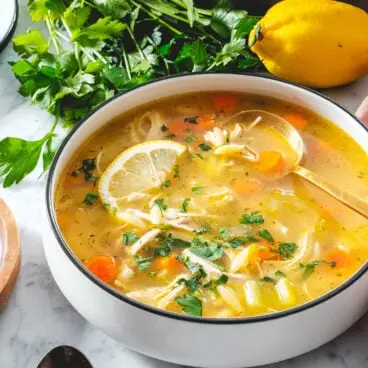 הנה ארוחה המקבילה לשמש בקערה: מרק אורזו עוף לימון ! הדרים Zingy תמיד מרימים את מצב הרוח שלנו, וכמעט מובטח זה יהפוך את היום שלך לבהיר יותר. ארזנו את מתכון המרק החדש הזה עם עוף מגורר רך ואורזו אוורירי, והכל במרק לימון חריף מתובל בשום, אורגנו ושמיר. תקלח אותו עם שמיר טרי או פטרוזיליה וזה המושלם ארוחת ערב קלה (שממשיך לתת עם שאריות!).