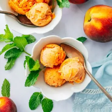מתכון סורבה אפרסק זה מכין פירה קפוא מתוק וקרמי! קל להקציף את הקינוח הקיץ המרשים הזה.