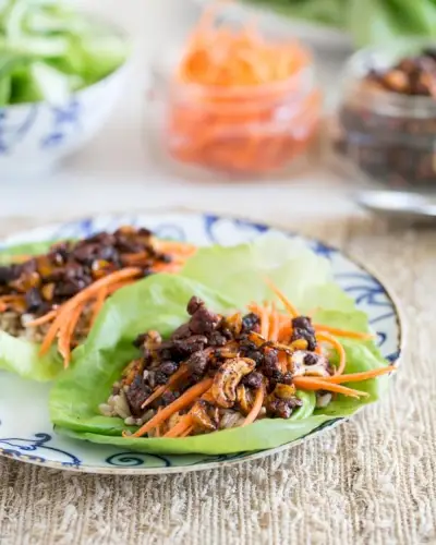 עטיפות החסה הטעימות האלה הן דרך מהנה להכין חסה חמאה לארוחת ערב! המילוי כולל אגוז וטופו מזינים אלה, מוקפצים עם רוטב סויה, אבקת צ'ילי ומעט סרירצ'ה כדי למקסם את הטעם העשיר. הוסיפו אורז חום וזו ארוחת ערב קלה שתרצו להכין שוב ושוב.
