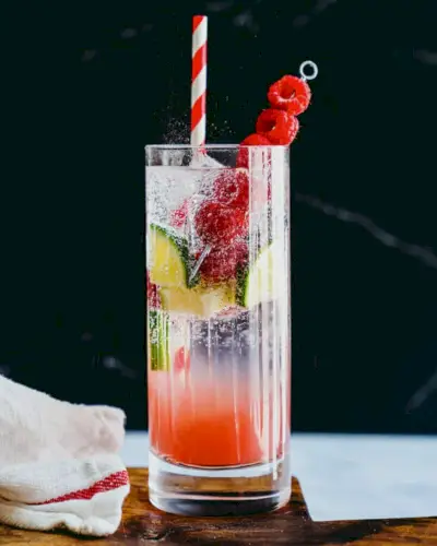 קוקטייל הג'ין ריקי נולד בשנות ה-80 ומאז הוא פופולרי. הנה גרסת מוקטייל שלו הכוללת מים מוגזים וסירופ פטל!