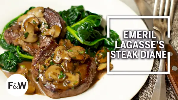 זמן הכנה: 10 דקות זמן פעיל: 12 דקות זמן כולל: 22 דקות תפוקה: 2 מנותכשתכנן את הפתיחה המחודשת של ה-Emeril's Delmonico ב-1998 בניו אורלינס לאחר שיפוץ היסטורי, השף אמריל לגאס רצה להחזיר את השירות ליד השולחן שהיה כה פופולרי בחדרי אוכל לפני זמן רב. סטייק מבושל בסגנון דיאן מתכוון להקפיץ דק או פילה מיניון בחמאה ולאחר מכן להבהיב ולמזוג אותו ברוטב קוניאק יוקרתי; Lagasse מוסיף פטריות פרוסות למחבת לקבלת טעם עשיר יותר.