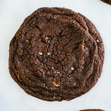 המתכונים של שרה תמיד במקום, אז עוגיות השוקולד האלה בהחלט לא היו זקוקות לשיפור. אבל אנחנו פראיירים לשילוב של מתוק ומלוח, אז הוספנו זילוף של מלח ים מתקלף בבאנג הראשון או השני של הפאן. הפופ המדהים של המלוח באמת מגביר את עוגיית השוקולד המריר הזו. אם יש לך קצת בהישג יד, אנו ממליצים עליו בחום: בנוסף הוא נותן פעולה קטנה דמוית זילוף לחלק העליון של העוגיה.