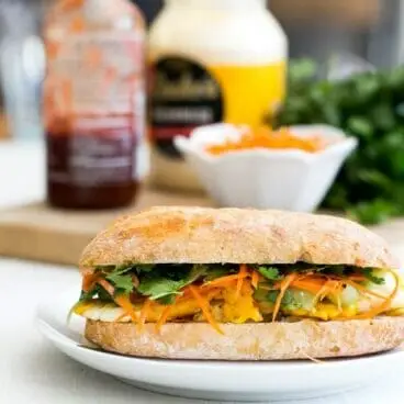 - אם אתה מעדיף גרסה טבעונית על צמחונית, נסה את שלנו Banh Mi טבעוני ! הוא מלא בחומוס ג'ינג'ר ליים, ירקות כבושים ורוטב חריף.